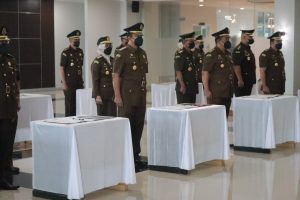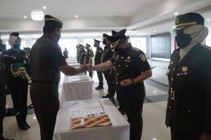 Upacara Pelantikan dan Pengambilan Sumpah Jabatan Pejabat Eselon III di Lingkungan Kejaksaan Tinggi Sulawesi Tengah dilaksanakan dengan memperhatikan protokol kesehatan dan sebelumnya telah dilakukan pemeriksaan swab antigen. ( NSR T./ Krim Kejati Sulteng)