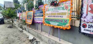 Diantara karangan bunga yang terpajang di antaranya karangan bunga dari Ketua DPP Partai Gerindra Bapak H.Prabowo Subianto, Ketua DPD Gerindra Sulawesi Tengah, Gubernur Sulteng dan Walikota Palu, serta para tokoh politik lainya.