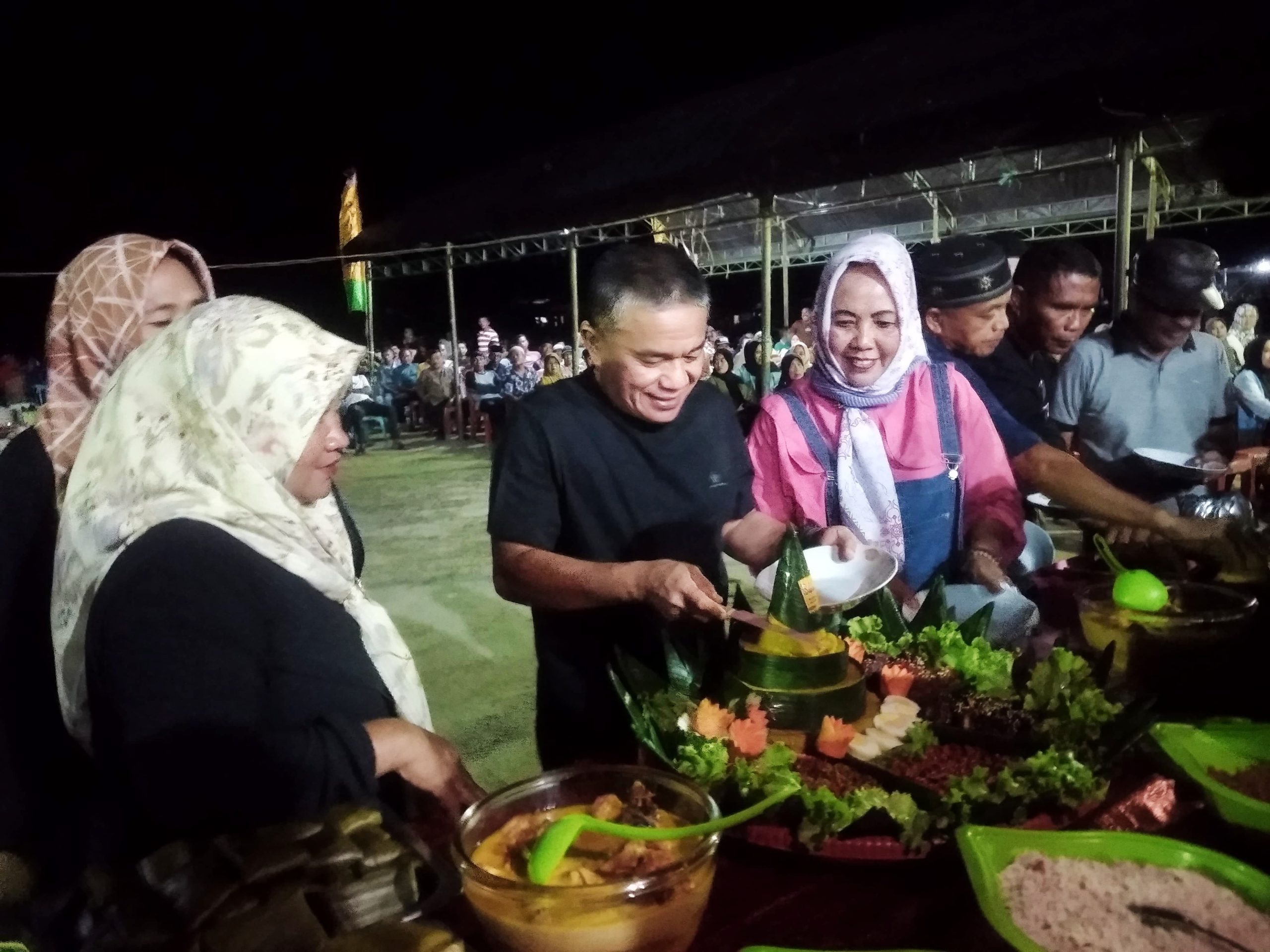 Hadianto Rasyid bersama warga melakukan pemotongan tumpeng sebagai ungkapan rasa syukur HUT ke-46 Kota Palu tahun 2024.
