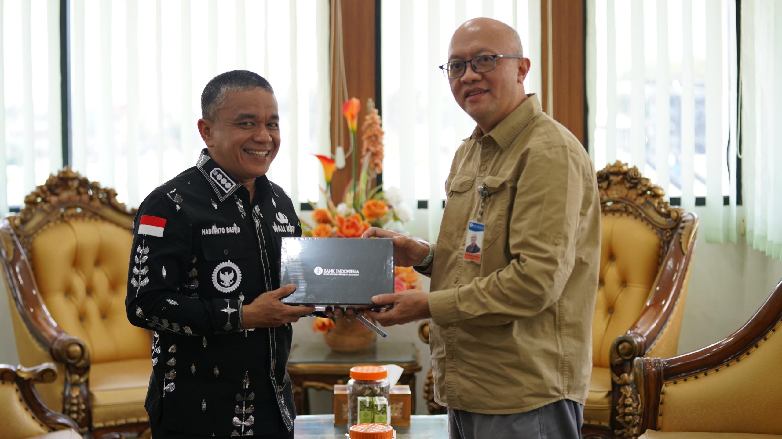 Palu, beritasulteng.id – Wali Kota Palu, H. Hadianto Rasyid, SE, didampingi istrinya Hj. Diah Puspita, S.AP., M.AP., menerima kunjungan resmi Kepala Bank Indonesia (BI) Perwakilan Provinsi Sulawesi Tengah, Muhammad Irfan Sukarna, di ruang kerja Wali Kota, Kamis (4/9/2025).