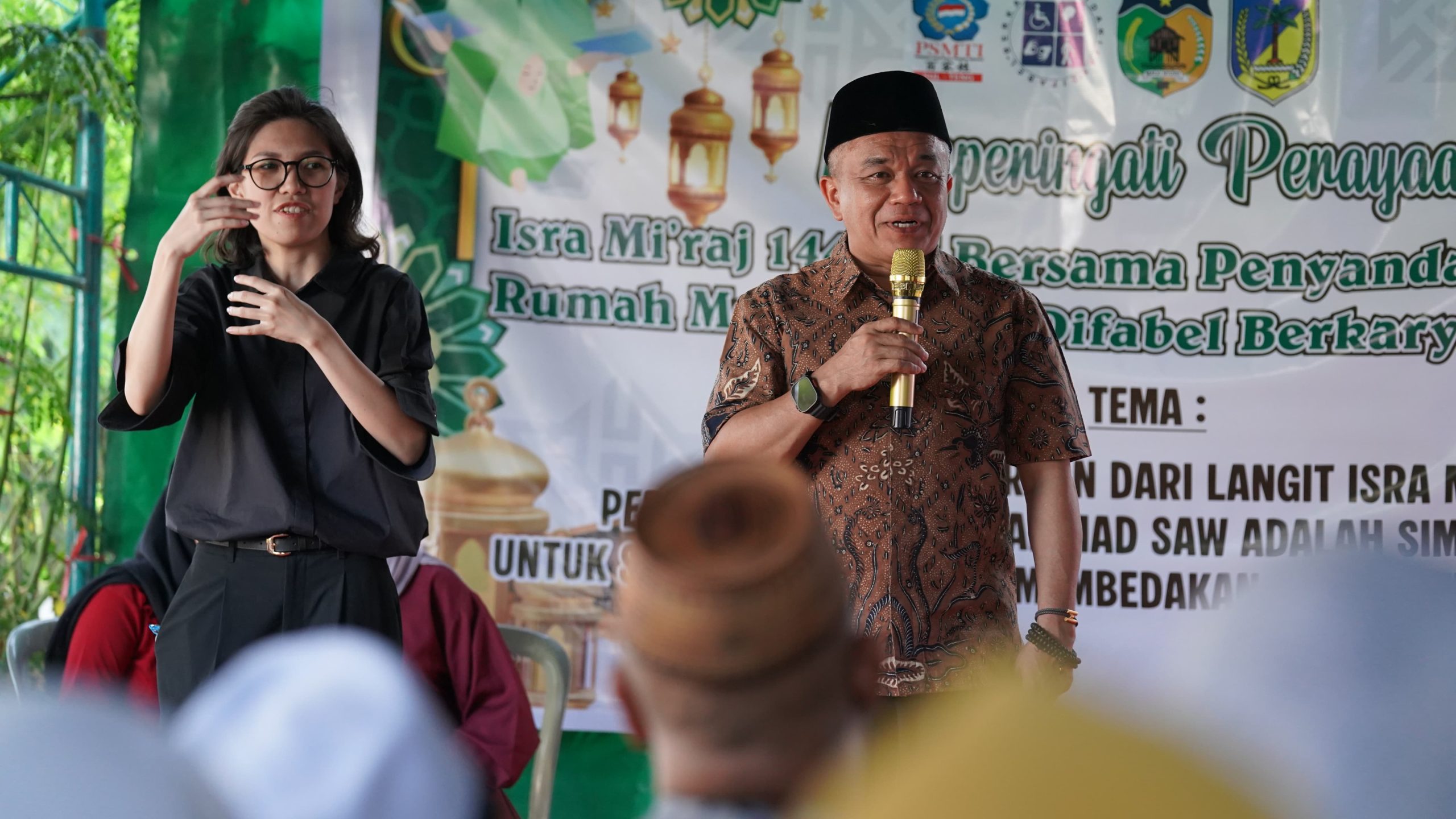 Palu — Wali Kota Palu, H. Hadianto Rasyid, SE, menghadiri peringatan Isra Mi’raj Nabi Muhammad SAW 1447 Hijriah bersama penyandang disabilitas yang digelar pada Minggu (25/1/2026) di Rumah Merah Putih Difabel Berkarya, Jalan Jati, Kota Palu, sekitar pukul 16.00 Wita.