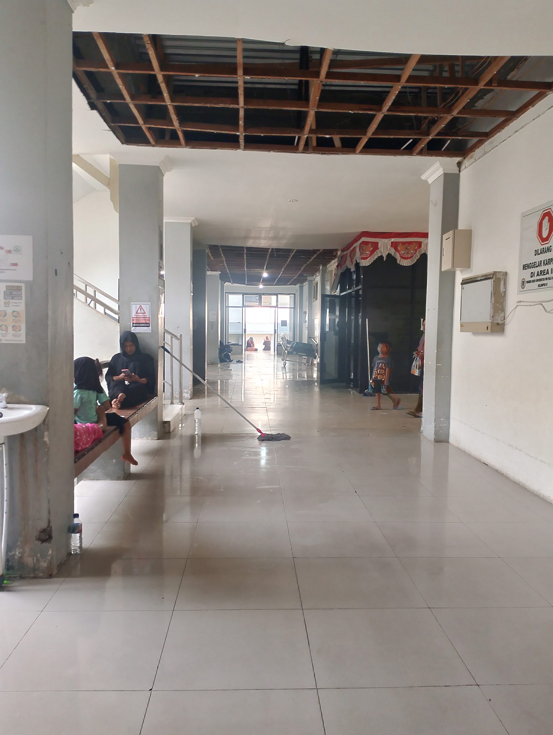 Kerusakan plafon di beberapa titik penghubung antar gedung turut terlihat dan dinilai dapat mengganggu kenyamanan pasien maupun keluarga yang menunggu.